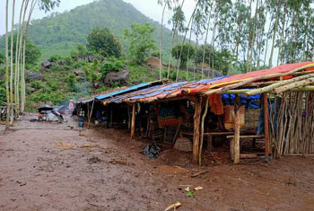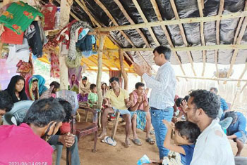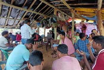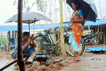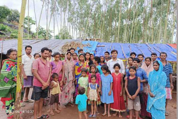 During the great persecution in Odisha, 13 families were sent out of their village. They all stayed in a single thatched shed and lived for a long time. No proper facilities. They were brutally scared and beaten, sent out of their villages. No one to care them. No proper shelter. Cooking in the outside and when rain comes, they shelter with umbrella.